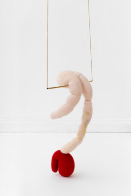 EMMA JÄÄSKELÄINEN transforms classic stone sculpting materials and techniques into contemporary, contemplative, cheeky, soft and bulky (or “Gustonian”, as she herself describes) forms, that carry strong personal stories. From monumental scale to palm-size, and from hard materials such as granite, marble and travertine to metal casting and wool felting, Jääskeläinen looks for impulses that arise from within the material, as it slowly reacts to her touch. In a light-hearted way her works address fundamental, corporeal experiences such as motherhood, empathy and caring.