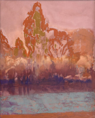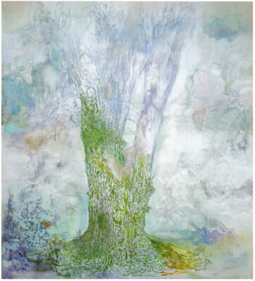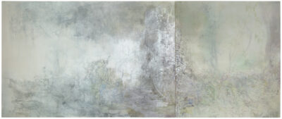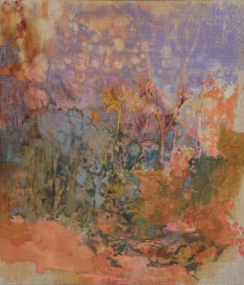 Settings are formed within the landscape and among the trees, with interlaced stretches of sky, rough annual rings, the curvatures of valleys and treetops mingling with summits. The journey unfolds along playful patches of sunlight, delicate coral-like branches, the smooth surfaces of stepping stones, reflecting puddles, resolute dots and dashes. The chosen routes and the traces they leave shine through one another. For Hiltunen, paintings are like quiet, breathing creatures that do not shout or explain. The observations they depict are softly blurred and the memories unreliable, yet meaningful, steadying, cherished. There is only light, colour, presence, time, and a place from which the human figure is absent.