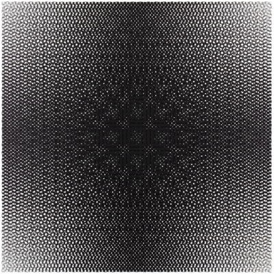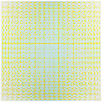 Over the years and decades, Kujasalo’s visual language of lines, points and squares has become richer and softer. His most recent works are characterised by lyricism and the subtlety of the delineated forms. Viewed up close, the individual structures in the paintings appear to sit beside, on top of and underneath each other. Seen from a distance, the paint almost melts into a soft light and a shimmering, carpet-like surface. The pictorial space shifts from airy lightness to impenetrable density, with routes and layers guiding the eye and mind along paths of intersecting forms and ideas. In front of the works one encounters a deeply human question: how do we perceive a world that is at once orderly and wholly unpredictable?